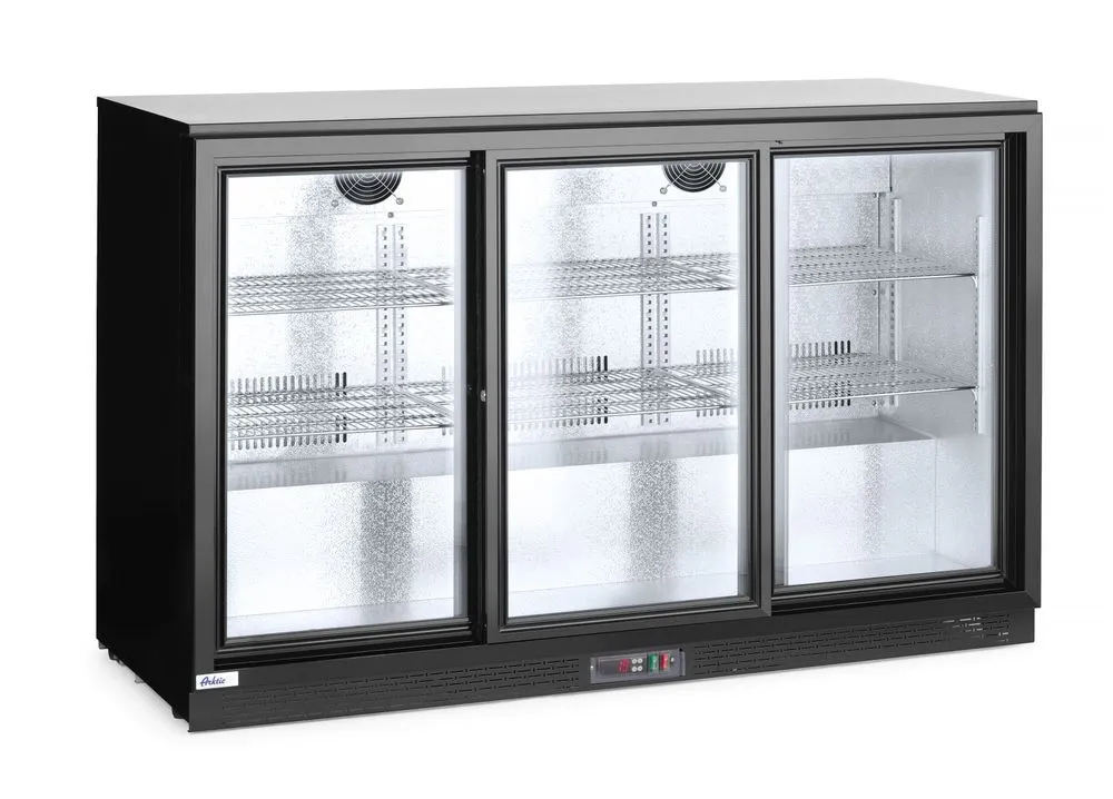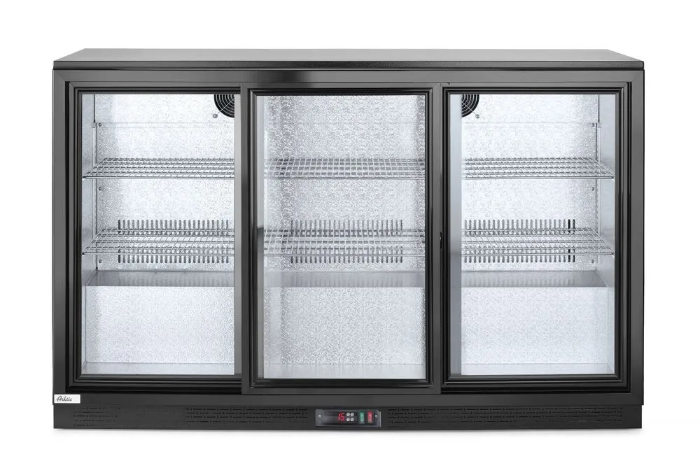 Backbar koelkast met drie schuifdeuren, Arktic, 254L, Zwart, 220-240V/160W, 1350x520x(H)865mm