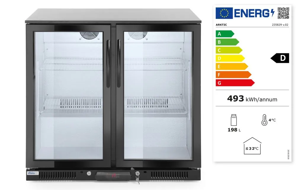 Backbar koelkast met dubbele deur, Arktic, 158L, Zwart, 220-240V/160W, 900x530x(H)870mm