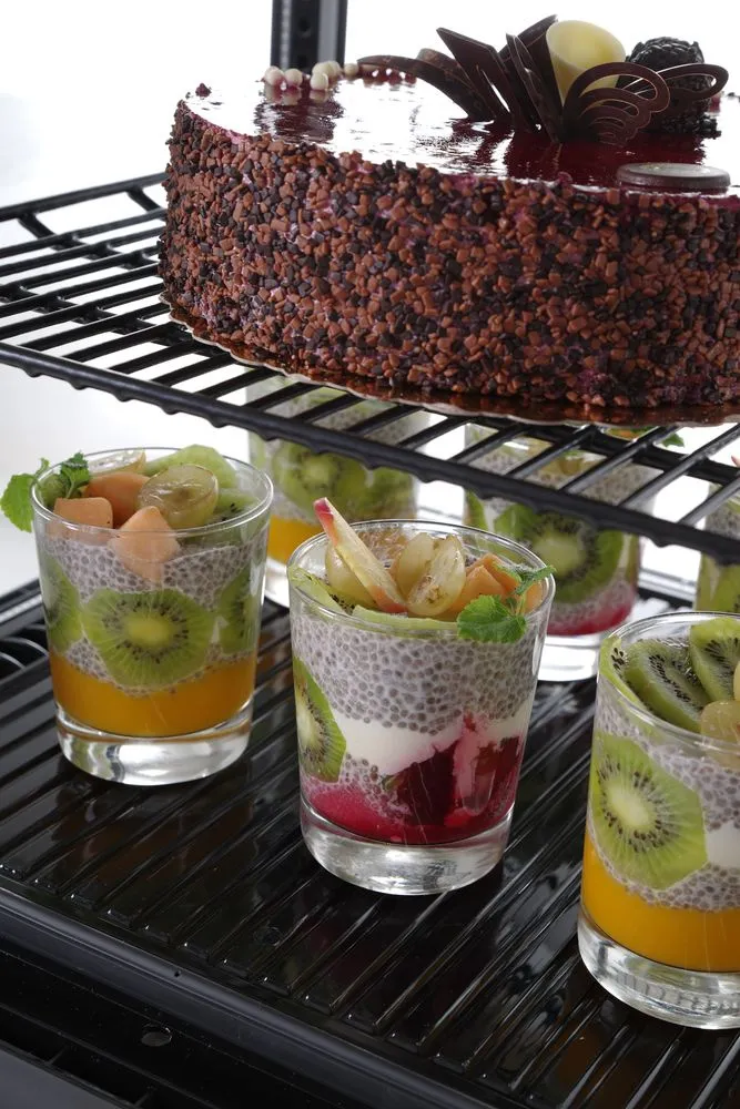 Geschikt voor allerhande gekoelde producten. Voorzien van dubbelglas en verstelbare schappen.