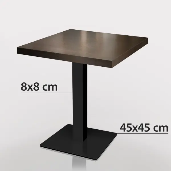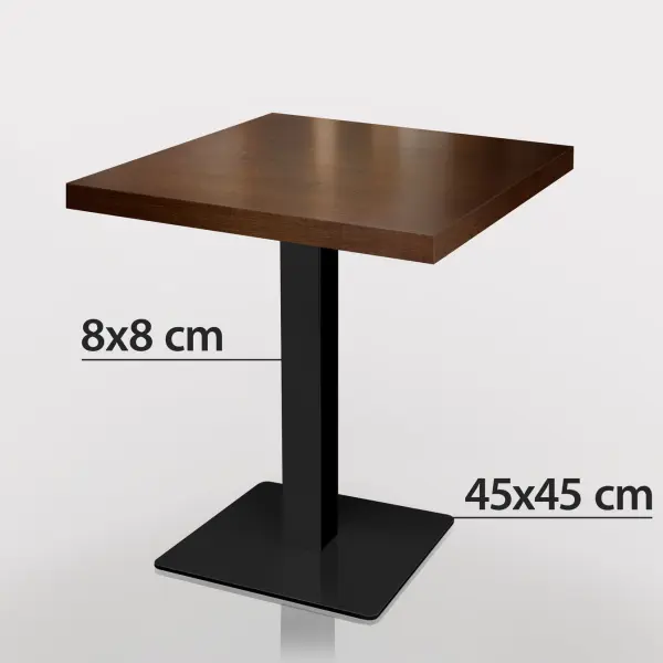 Tafel Vierkant Walnoot met Zwart onderstel 70cm x 70cm