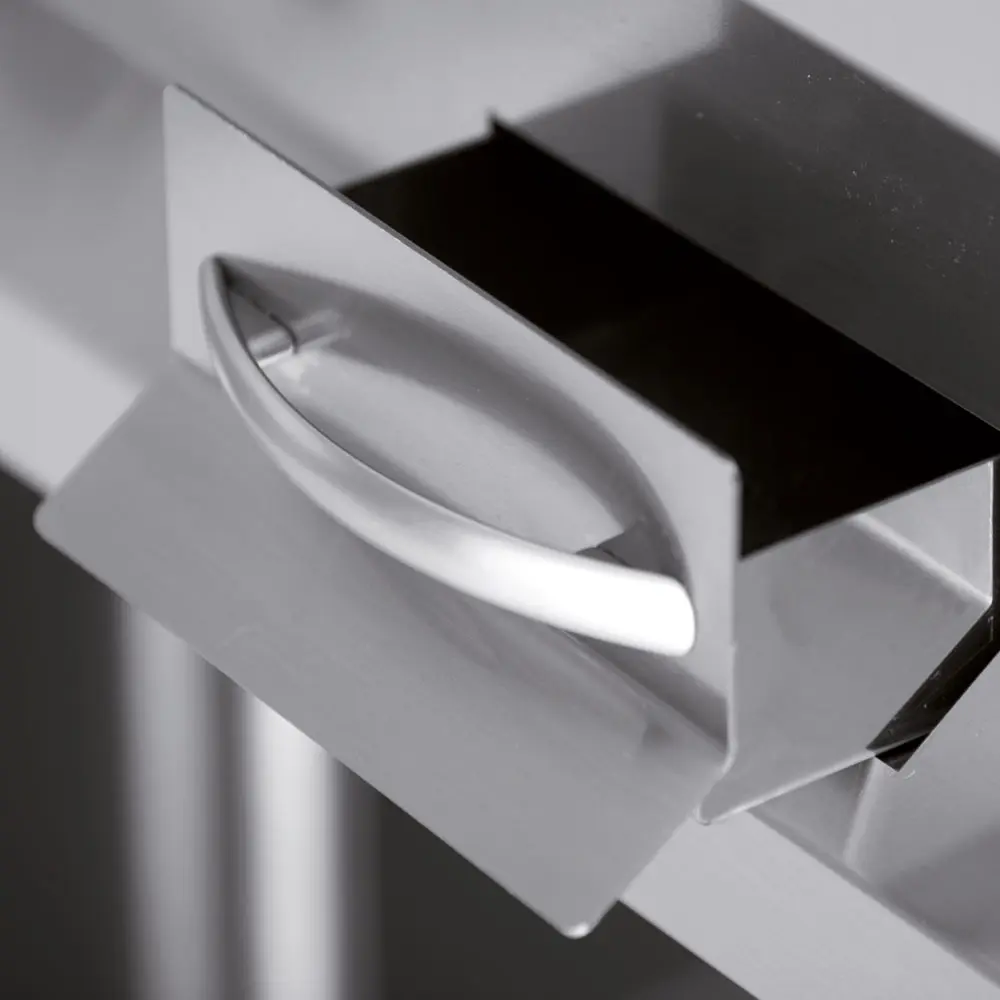 Mogelijkheid van rug aan rug 700+700 “BACK to BACK” of in combinatie met het gloednieuw gamma OPTIMA 900 700+900. Bovenblad in inox AISI 304 met een dikte van 15/10 mm , boord vooraan met waterkering, diepgetrokken en waterdichte werkbladen , binnenhoeken kuipen met afgeronde hoeken , kwaliteitsonderdelen ”High Technology ” … Onberispelijke afwerking, met zorg voor detail , een subliem Design , en een perfecte en eenvoudige aflijning door middel van kop aan kop koppeling ” HEAD to HEAD ”.