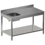 Chef-tafel met onderblad, spoelbak links + achteropstand