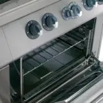 - Oven in R.V.S. AISI 430, afgeronde hoeken, stalen bodem, uitneembare structuur, dubbelwandige deur (met warmte isolatie 40mm), verende scharnieren met tegengewicht, handgreep in R.V.S.