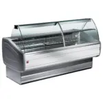 Gekoelde vitrinetoonbank gebogen ruit, geventileerd, met reserve