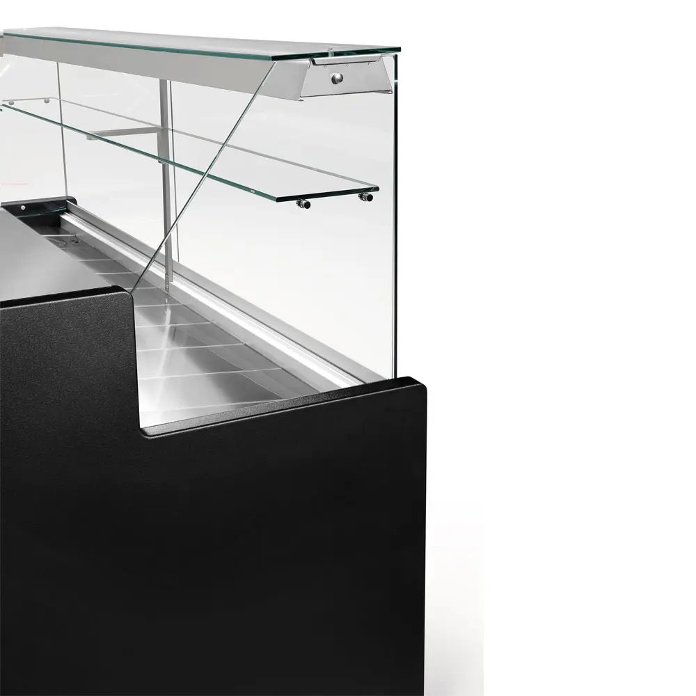 Gekoelde vitrinetoonbank met rechte ruit 90°, met reserve – ZWART