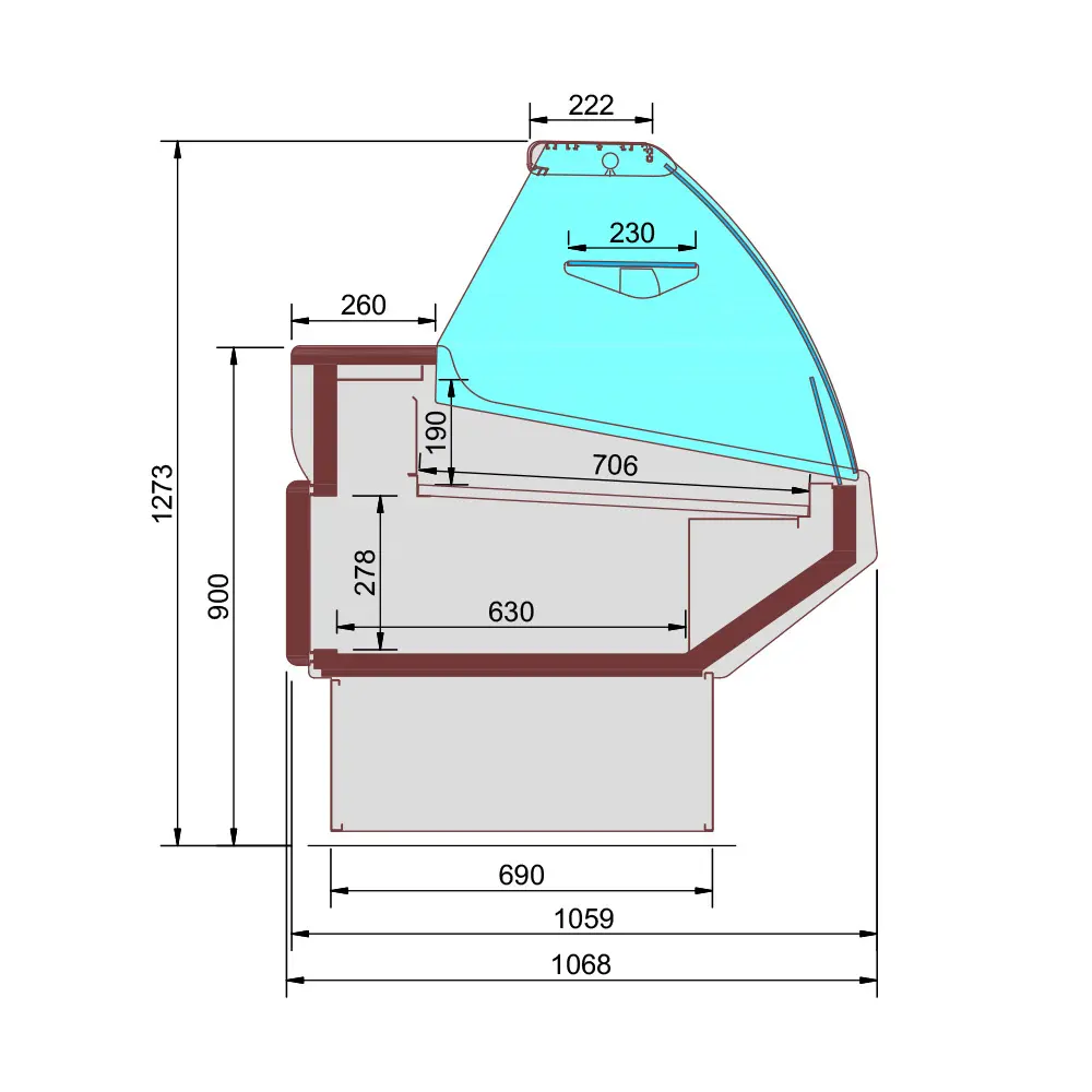 mm (B x D x H) : 1050 x 1070 x 1277 – T° : +2° +4° – kW (elec) : 0.32