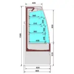 - Displaydiepte 436 mm, hoogte 830 mm.