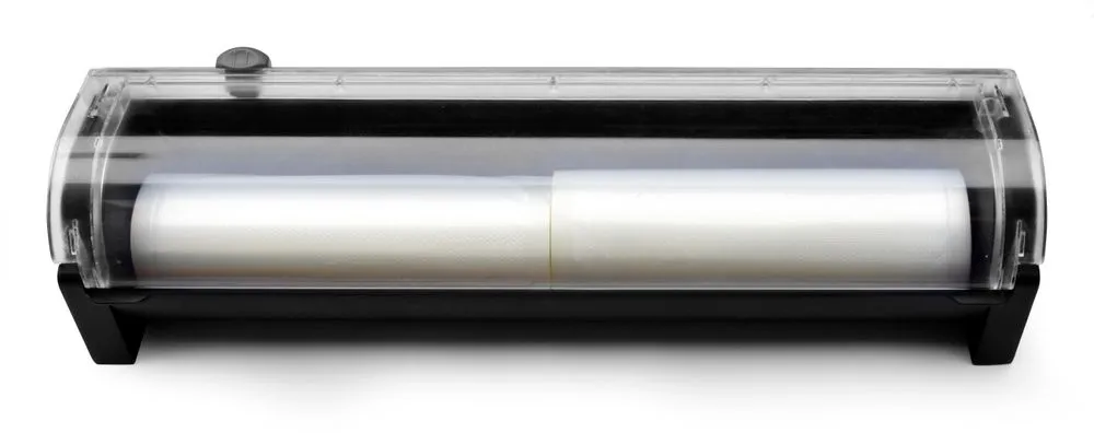 Kan worden bevestigd aan 975374 vacuüm verpakkingsmachine Kitchen Line of als losse toevoeging gebruikt worden bij andere vacuüm verpakkingsapparaten. Voorzien van een verwijderbaar mes om precies de juiste lengte zak af te snijden. Interne afmetingen: 412x101x(H)101 mm. Voor zakken op rollen tot ø100×400 mm. Behuizing van ABS. Transparant polycarbonaat deksel.
