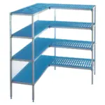 - Roestvrijstalen schap met geanodiseerd aluminium profiel en verwijderbare geperforeerde polypropyleen schappen.