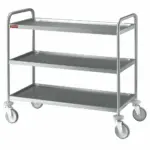 - 4 zwenkwielen Ø 125 mm met stootrand, waarvan 2 met rem.