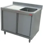 Spoeltafel 1 kuip 600x500xh275, links druipvlak op kast met 2 schuifdeuren