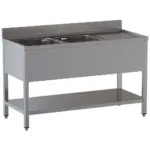 Spoeltafel 2 kuipen en 1 afdruipblad rechts, met onderlegplank