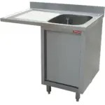 Spoeltafel met 1 kuip, druipvlak links, op kast met 1 draaideur en ruimte voor vaatwas
