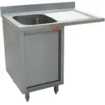 Spoeltafel met 1 kuip, druipvlak rechts, op kast met 1 draaideur en ruimte voor vaatwas