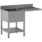 Spoeltafel met 1 kuip en 1 afdruipblad rechts, met onderlegplank en ruimte voor vaatwasser