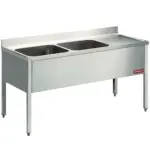 Spoeltafel met 2 kuipen, 1 rechts druipvlak, met onderstel