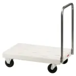 - 4 zwarte wielen Ø 140 mm waarvan 2 zwenkwielen.