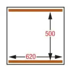 - Kamerafmetingen: 2x 620x500xh240 mm (afdichting lengte: 4x 620 mm).