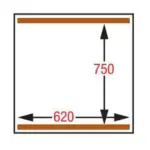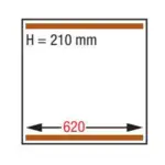 - Kamerafmetingen: 2x 620x750xh210 mm (afdichting lengte: 4 x 620 mm).