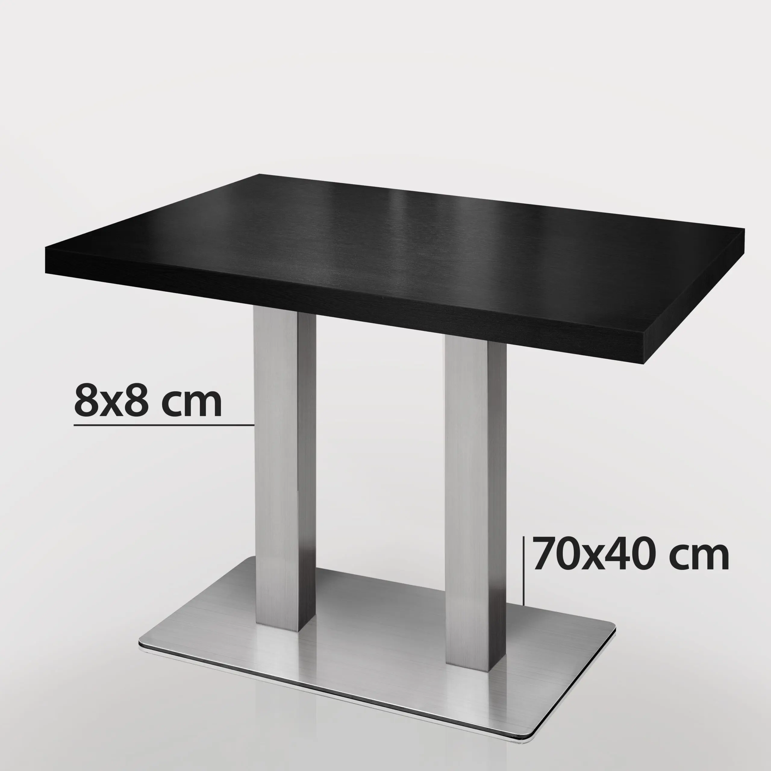 Tafel Rechthoek Zwart met RVS onderstel 120cm x 70cm