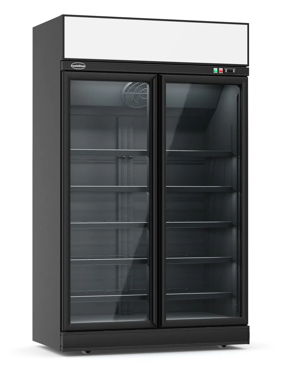 Maak kennis met onze indrukwekkende zwarte retail vrieskast met 2 glasdeuren, speciaal ontworpen voor supermarkten en professionele instellingen!
