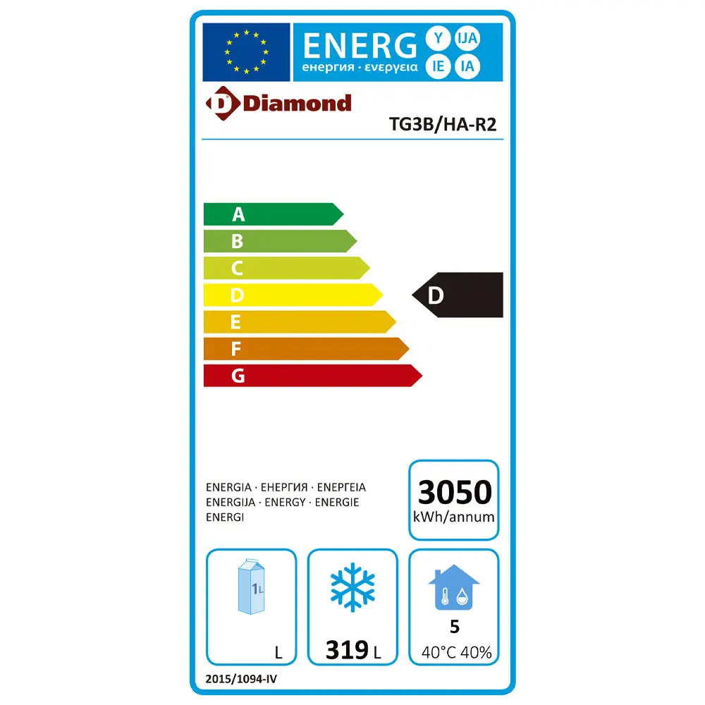 Wand diepvriestafel, geventileerd, 3 deuren GN 1/1, 405 liter
